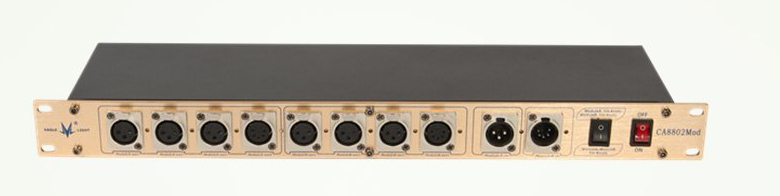 Thiết bị có 2 đầu vào DMX và 8 đầu ra.