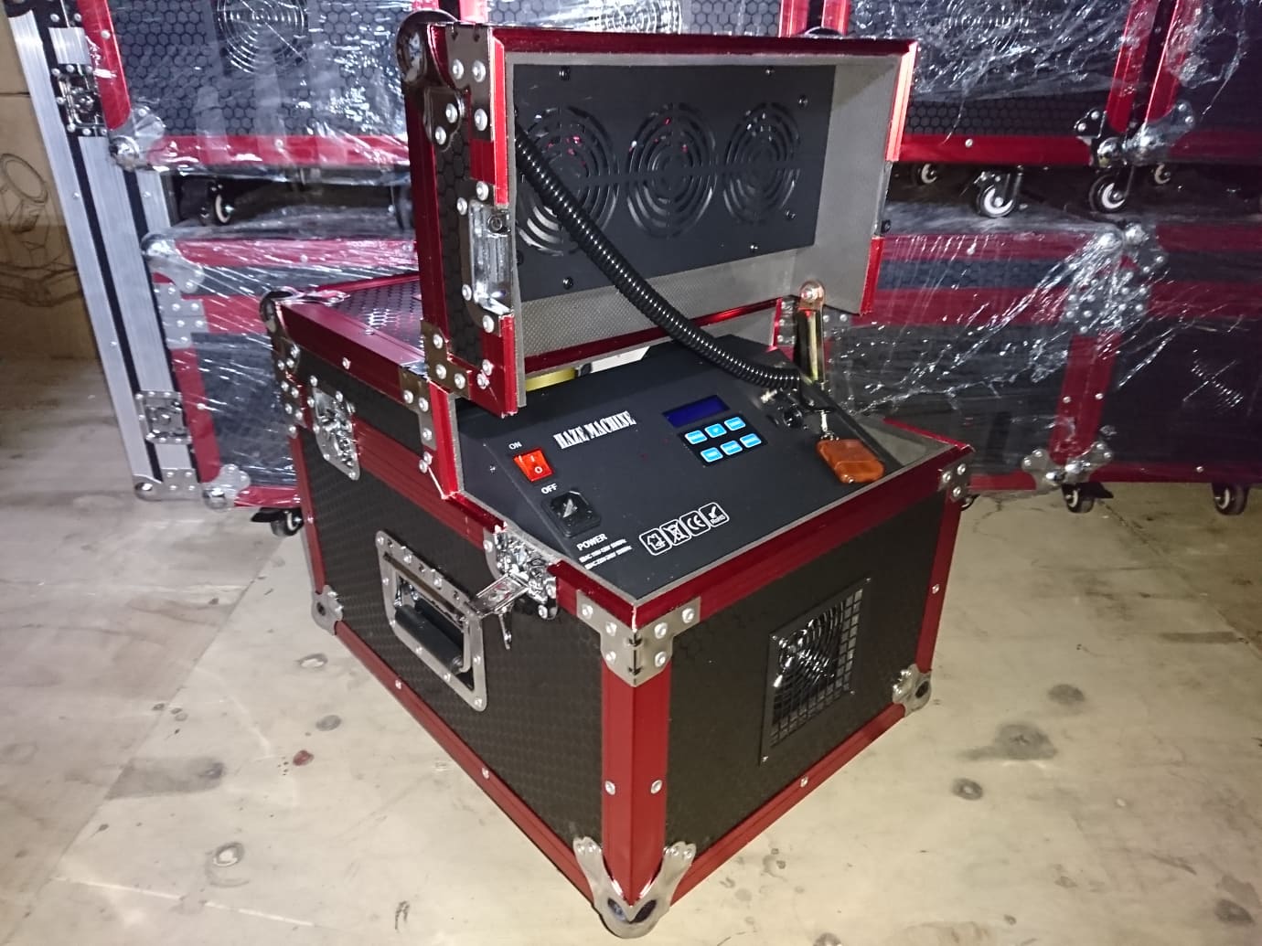 Với máy khói haze, trước khi vào chương trình bạn chỉ cần bật máy trước 5 đến 10 phút là đủ để lượng khói sinh ra len lỏi khắp khán phòng. Máy được trang bị 1 màn hình LCD giúp dễ dàng cài đặt cũng như lưu chương trình và bạn có thể điều chỉnh lưu lượng khói từ 0-100% giúp tối ưu hóa và thích hợp với từng không gian sử dụng.